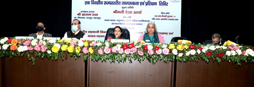 29 Nov. 2021. Dehradun : प्रधानमंत्री मत्स्य सम्पदा योजना एक दिवसीय जागरूकता एवं प्रशिक्षण कार्यक्रम का आयोजन राष्ट्रीय सहकारी विकास निगम द्वारा दिनांक 29.11.2021 को IRDT, ऑडिटोरियम, देहरादून में किया गया, इस शिविर में उत्तराखंड राज्य दूरस्थ स्थित जनपदों से करीब 200 से अधिक मत्स्य पालकों ने प्रतिभागिता की।कार्यक्रम का सुभारम्भ दीप प्रज्वलित कर किया गया , कार्यक्रम में मुख्य अतिथि रेखा आर्या, मंत्री, मत्स्य, पशुपालन, डेयरी एवं महिला बाल विकास द्वारा प्रतिभाग किया गया।